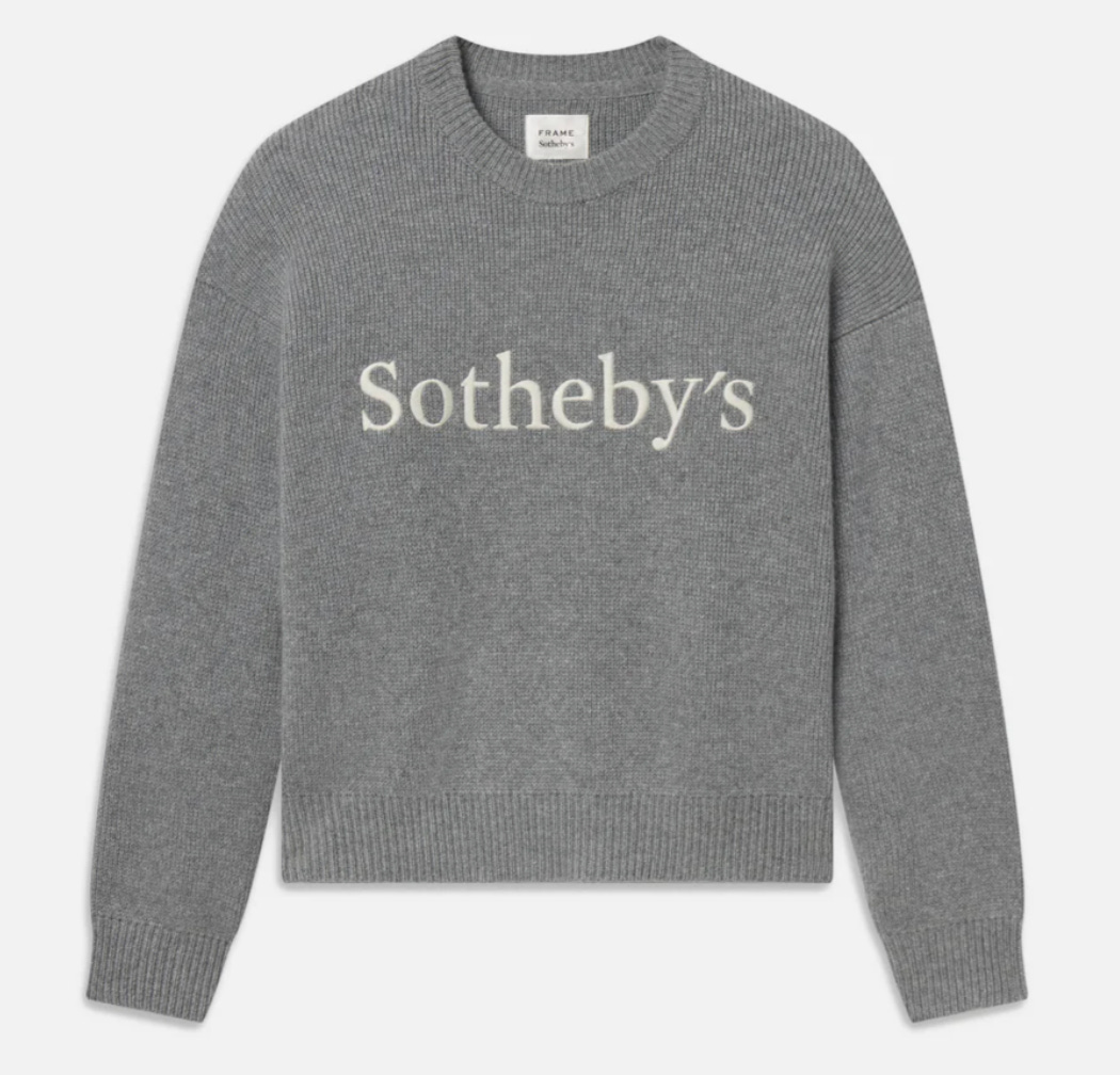 Still not sure what to make of this collaboration, but in the realm of merch, it is hard to deny the results are pretty chic. FRAME x Sotheby’s collab sweater for someone EXTREMELY special.