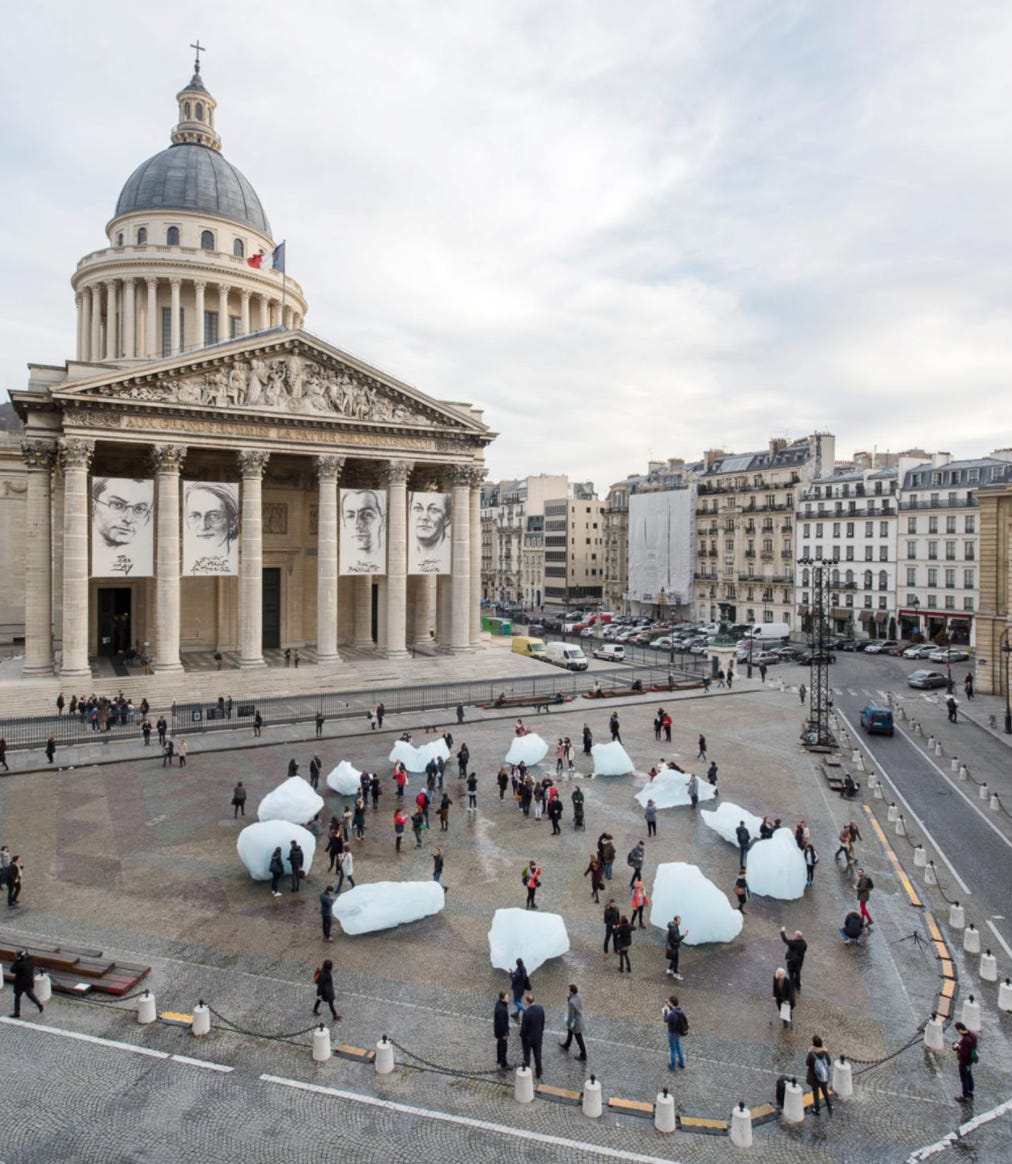 Eliasson’s practice as a whole, aims to highlight the beauty and challenges of the natural world - one of my all-time favorites was a piece called Ice Watch, 2014 where he brought chunks of fallen glacial ice to city centers around the world in order to serve as a visual reminder of the impact of climate change on the environment. He also timed the London edition of the installation to coincide with the meeting of world leaders at a climate change conference.