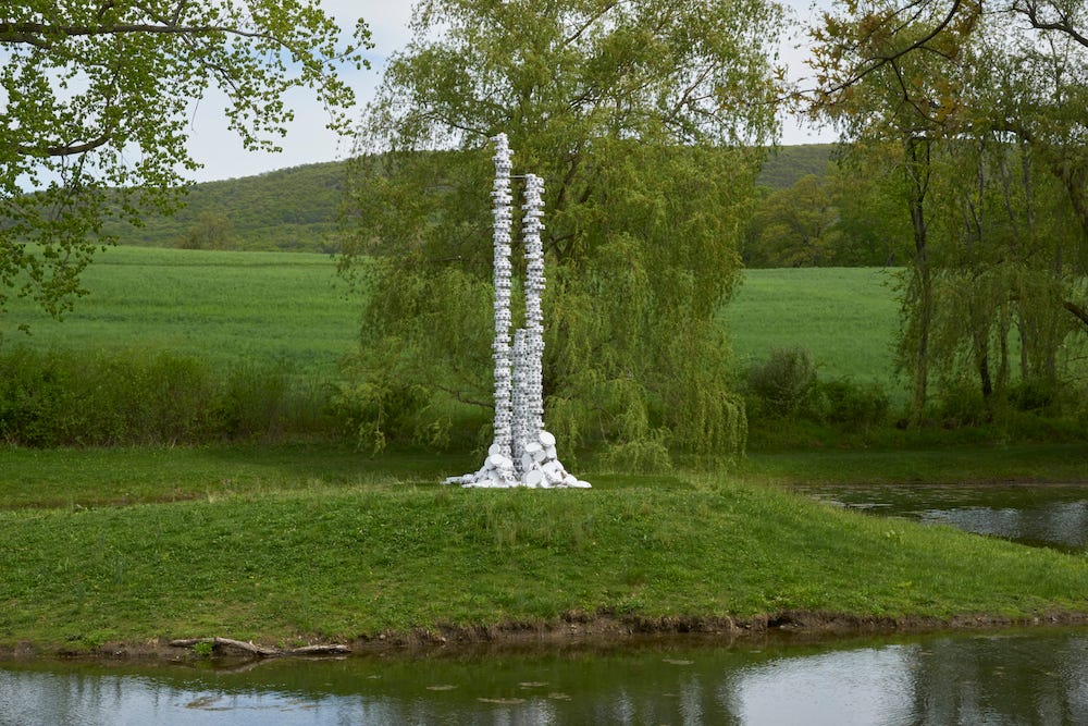 Allison Janae Hamilton’s work focuses on the environment and the effects on marginalized communities in particular - when it comes to natural disaster, people of color are always on the front lines. This work created for Storm King Art Center, involves a tower of tambourines on an island, symbolizing and memorializing thousands of black migrant workers killed and buried in unmarked mass graves due to two historic storms—the Great Miami Hurricane of 1926 and the Okeechobee Hurricane of 1928.